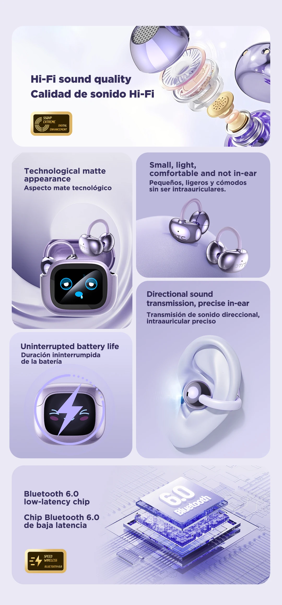 Oferecendo graves profundos e agudos nítidos em qualquer volume.Projetado para conforto de ouvido aberto,